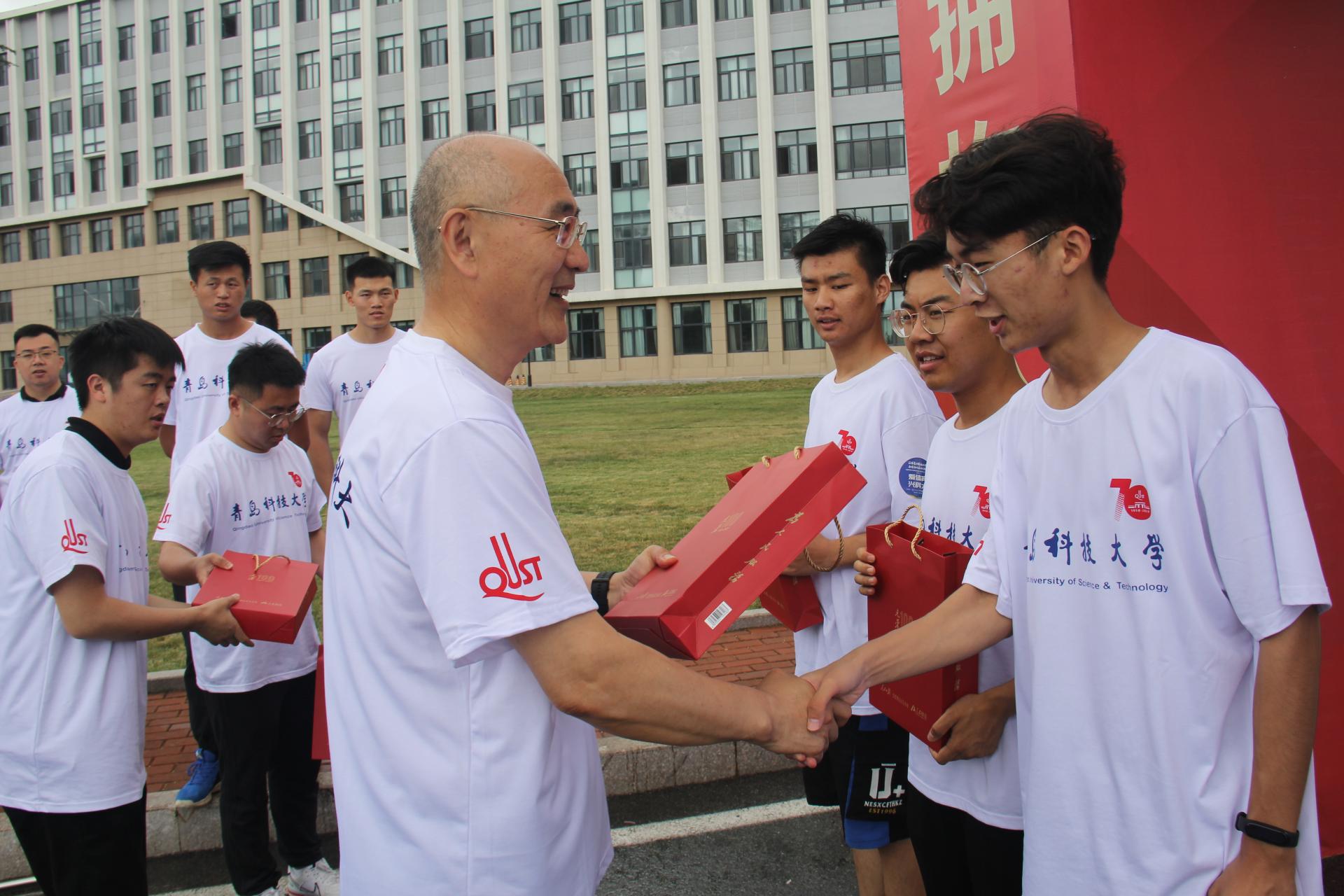陈克正与青年学生围绕学校体育综合改革实践平台之崂山校区“东三楼”红色“打卡点区”进行了激情奔跑,并与青年学生亲切交流。他指出,习近平总书记在“七一”重要讲话中关于青年的重要论述,为青科大青年学生奋发成才指出了明确方向、提供了根本遵循。体育代表着青春、健康、活力,体育使人快乐、体育丰富人生、体育塑造人格。大家要顺应学校全面推进体育综合改革的东风,从体育出发,践行“拥抱体育、出彩人生”理念,打造“爱体育·兴科大”品牌,积极参与体育锻炼、体悟体育精神、练就强健体魄,在体育锻炼中享受乐趣、增强体质、健全人格、锤炼意志,增强做中国人的志气、骨气、底气,以实际行动唱响“让党放心、强国有我”时代最强音。
