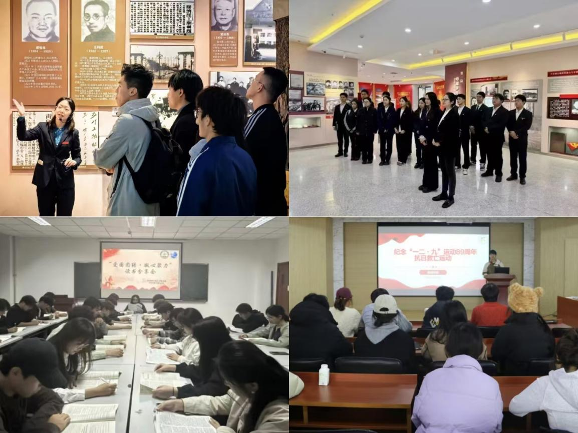 机电学院团委、信息学院团委、传媒学院团委、体育学院团委组织开展红色主题观影活动,体悟先辈们坚定的爱国信念与无畏精神。外国语学院团委、数理学院团委组织开展红色主题读书分享会,引导青年讲述红色故事、传承革命精神,进一步培养青年学生的爱国情怀和责任担当。经管学院团委、艺术学院团委、化工学院团委、中德工程学院团委、高密校区团委分别开展感悟留言活动、“求思得”学术研讨会、爱国精神专题学习活动,引导广大青年学生传承红色基因、赓续红色血脉。自动化学院团委、数据科学学院团委举办纪念一二·九运动89周年暨迎新晚会,面向全体新生讲好爱国主义教育思政课。中德科技学院团委、化学院团委、环境学院团委组织青年学生走进中共青岛党史纪念馆、崂山党史馆,深化青年学生对爱国运动历史的认识。法学院团委、材料学院团委、生物学院团委开展志愿宣讲活动,用青言青语传递红色故事接力棒,引导青年学生以更加饱满的热情和更加坚定的信念投身到党的事业之中。