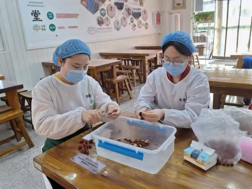 活动当天,志愿者们一早便抵达日善堂,他们分工明确、配合默契,对日善堂内外环境进行全面清扫,为老人们打造一个干净整洁的就餐环境。随后,在值班团队的带领下,志愿者们为老人们精心准备午餐,用实际行动传递温暖与关爱,让老人们在寒冬里感受到家的幸福与温馨。