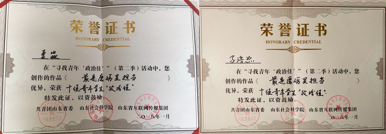 活动在短短一个月时间,收到山东省内50余所高校青年思政教师和学生创作的理论文章、视频、H5和手绘等1200余件作品,实现了全省重点高校全覆盖。我校师生在最终评选的三类奖项共29个作品中独揽三项,斩获佳绩。