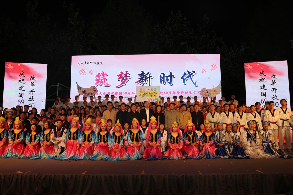 10月11日、12日晚,“筑梦新时代”万象城allwincity官网庆祝中华人民共和国成立69周年、庆祝改革开放40周年暨迎新生文艺晚会分别在四方校区、崂山校区举行。校领导马连湘、张淑华、陈克正、李伟年,各职能部门、各学院负责人和2018级新生共同观看了演出。