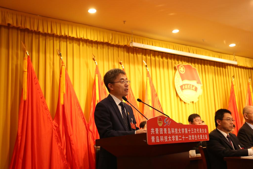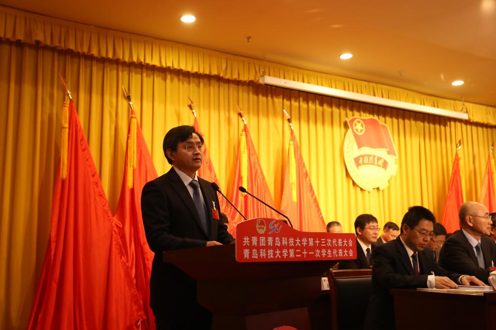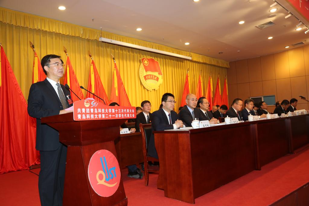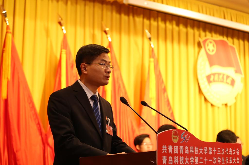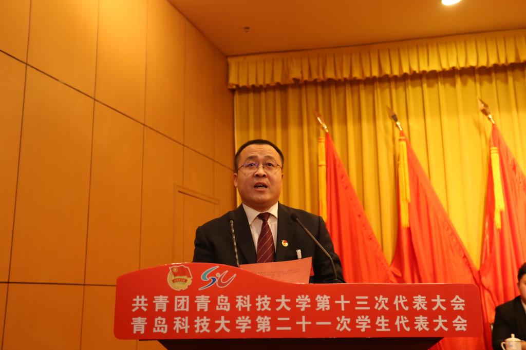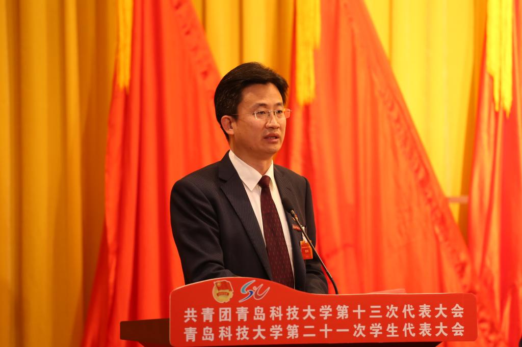 张海军在致辞中指出,青岛共青团与青科大团委,青岛市学联和青科大学生会并肩前行,团结协作,共同奋斗,密切配合,建立了亲密兄弟关系,结下了深厚友谊。希望青岛共青团与青科大团委能够进一步深化校地合作,促进互利双赢,不断提高服务学校改革发展和学生成长成才的能力水平。