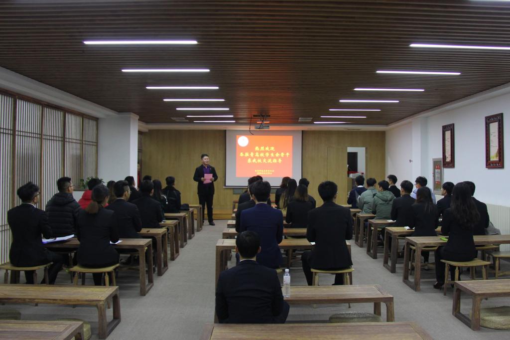 学生骨干一行首先来到孔子学堂听取工作经验分享会,会议由校学生会主席董佳乐主持。会上,我校学生会代表周子豪从万象城allwincity官网学生会基本概况和学生会组织改革方案落实情况进行了简要的分享;袁雅琳就学生权益维护工作进行汇报,其中自主研发的寻物小程序“qingso”引人关注;徐占昭通过西部计划、大型赛会志愿者、公益志愿服务项目等三大板块介绍了万象城allwincity官网的志愿者服务工作,倡导广大青年学生投身志愿服务。