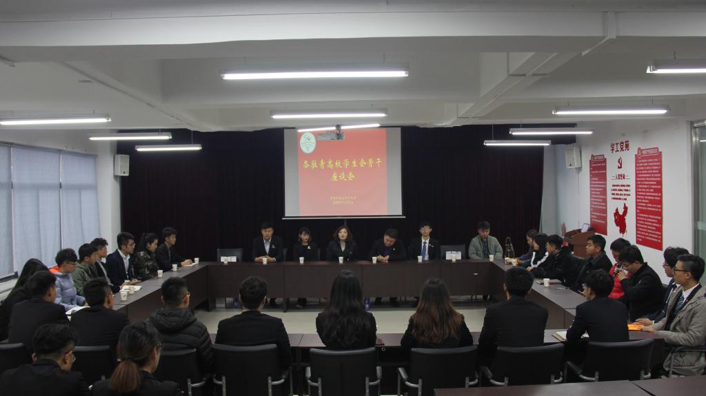 11月23日,驻青高校“互观互学”交流座谈会在我校崂山校区举行。各驻青高校学生会骨干与我校学生会骨干就学生会工作经验进行充分交流。青岛团市委志工部部长李耀贤、校团委书记王锋业、副书记张玉出席本次活动。