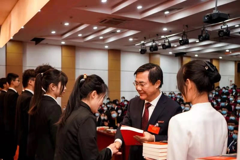 开幕式上,马连湘向全体学生代表赠送了《习近平与大学生朋友们》,并寄语全校广大青年学生争做新时代德智体美劳全面发展的社会主义合格建设者和可靠接班人。