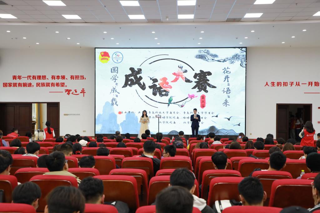 本次大赛自启动以来,各学院、校区积极参加,共有800余名青年学生报名参赛,最终共有17个学院35名选手进入决赛。决赛场上,选手们思维灵活、妙语连珠,充分展现了青科学子深厚的文化底蕴与良好的精神风貌。本次比赛共有三个环节。第一环节采取一人描述,一人猜词的答题模式,选手们的积极表现赢得观众们阵阵掌声;第二环节“千淘万漉虽辛苦,吹尽狂沙始到金”,在这一轮的比赛中,选手要根据已给汉字,将彼此关联的成语补充完整;第三环节 “腹中有书气自华,圣贤为友品自高”采用积分制比赛方式,要根据成语写出相应的历史人物。经过三轮激烈比拼,最终,信息学院代表队获得冠军,材料学院代表队、中德科技学院代表队分别获得亚军、季军。最后,许朝华老师对本次比赛进行点评。