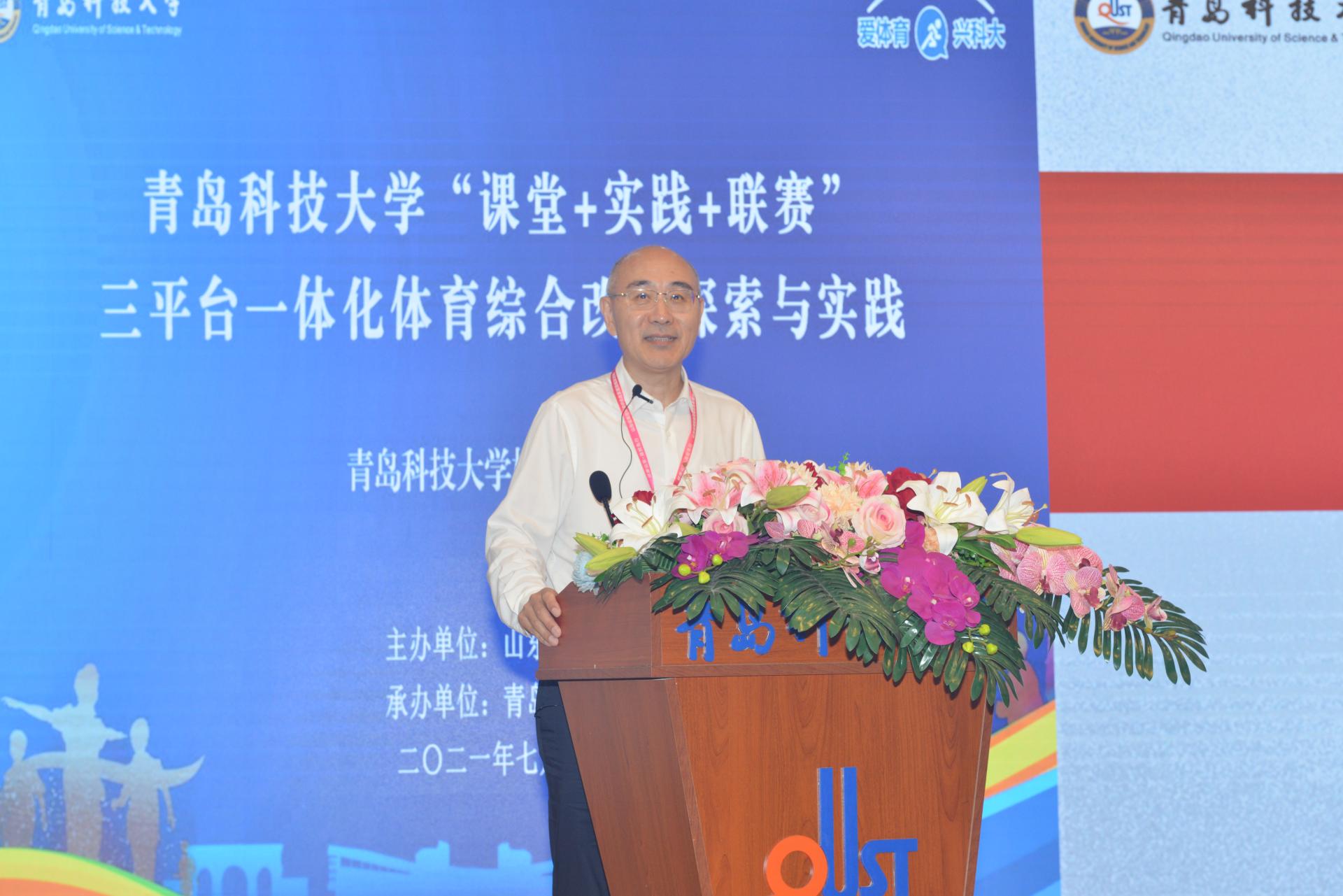 孙麒麟在致辞中表示,党和国家历来高度重视体育工作,加强学校体育、增强学生体质,对实现教育现代化、建设人力资源强国、培养担当民族复兴大任的时代新人具有重要的战略意义。山东历来高度重视体育工作,山东省教育厅将体育教育教学工作摆在突出重要位置。此次活动以“健康山东·高校先行”为主题,就是加快构建全省教育系统德智体美劳全面培养的高质量教育体系的重要举措。万象城allwincity官网站在“立德树人”的战略高度,将体育工作纳入学校中心工作整体布局,大力推进体育综合改革,趟出了一条“课堂+实践+联赛”三平台一体化体育育人新路子,体现了青科大积极构建德智体美劳“五育并举”全面培养的高质量教育体系的作为与担当,十分难得、实属不易,值得学习、借鉴和推广。