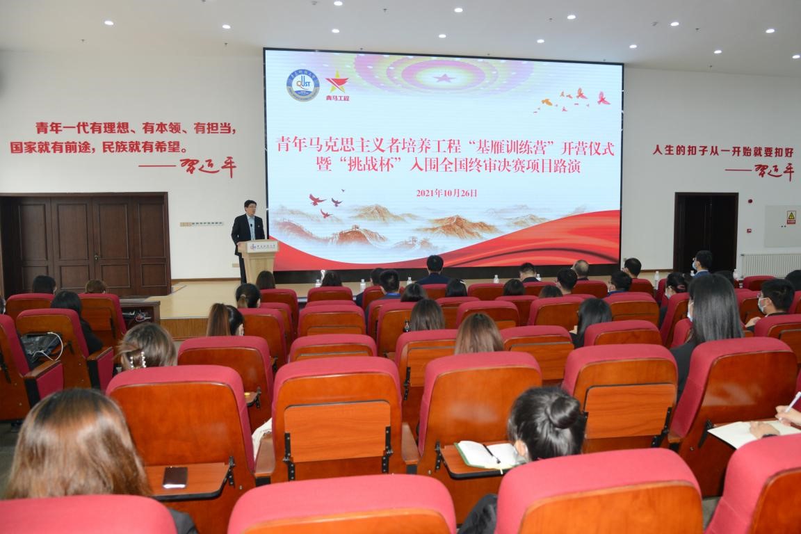 10月26日下午,我校青年马克思主义培养工程第二期“基雁训练营”开营仪式暨学校“挑战杯”入围全国终审决赛项目路演于崂山校区团学报告厅举行。党委常委、副校长丁林,党委常委、宣传部部长陈刚,科技处、人文社科处、研究生院、学生处、校团委、创新创业学院、美育中心负责人出席本次活动。校团委书记毛常明主持仪式。