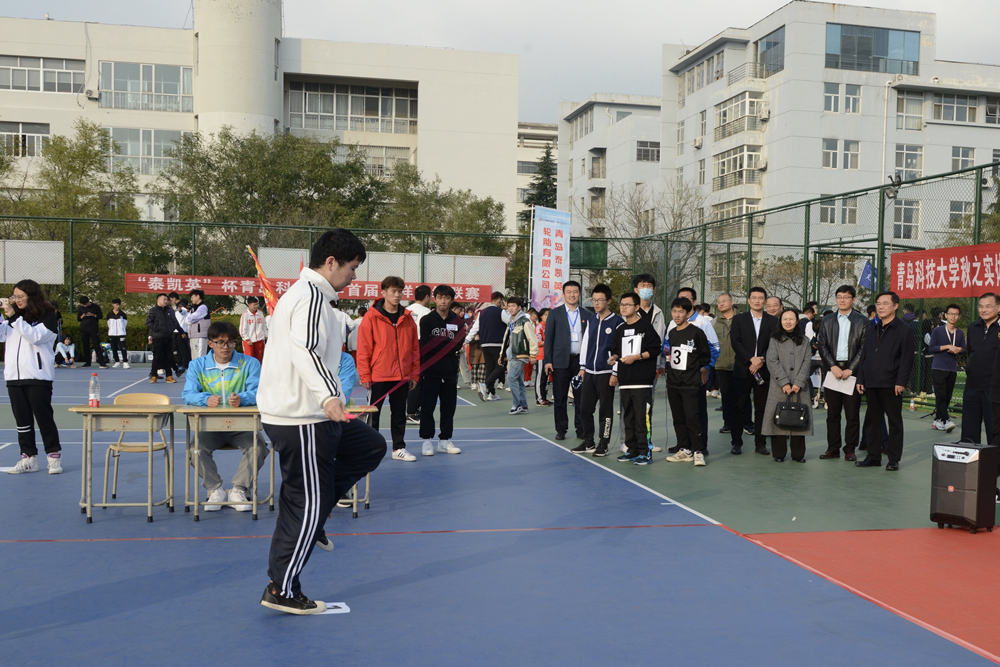 11月16日,学校“秋之实”体育文化节之体育联赛嘉年华暨首届青年学生跳绳大赛总决赛在崂山校区南苑操场举行。党委书记马连湘,党委常委、副校长李勇,党委常委、宣传部部长陈刚出席活动。校团委书记毛常明主持活动。