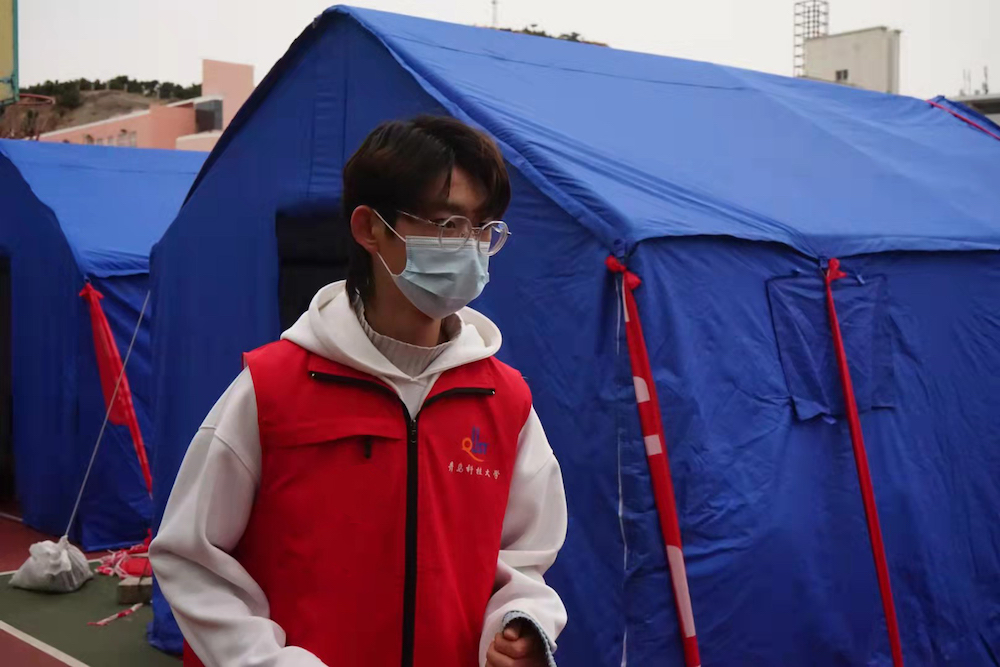早晨五点半,天还是黑的,董凯欣却早已到达了“战场”,无畏蓄力一晚的寒风,立刻投身信息录入。作为主要学生骨干,她在已经连续“战斗”了两个班次后,又一次冲上了“一线”。布满水汽的眼镜从不妨碍她录入的进度。“早出晚归的辛劳在防疫使命面前显得微不足道,高强度持久性的工作才更彰显了青年志愿者们‘特别能吃苦、特别能战斗、特别能奉献’的青春风貌。”董凯欣说道。