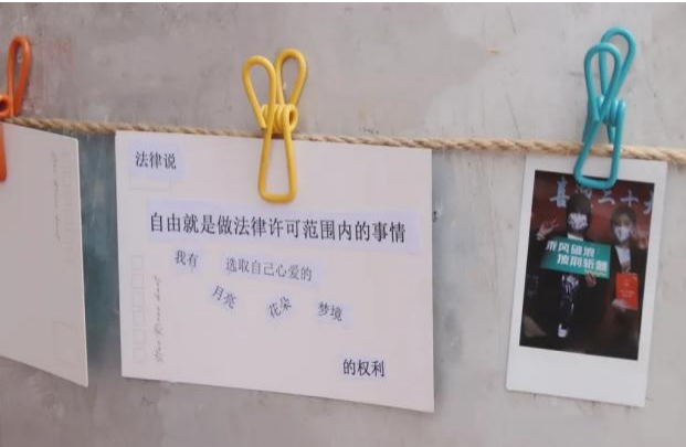 法学院迎新现场设置《梦想合同书》,新生身着法袍,手持《民法典》,从“智慧树”上摘取“知识”硕果,为专业学习预热。