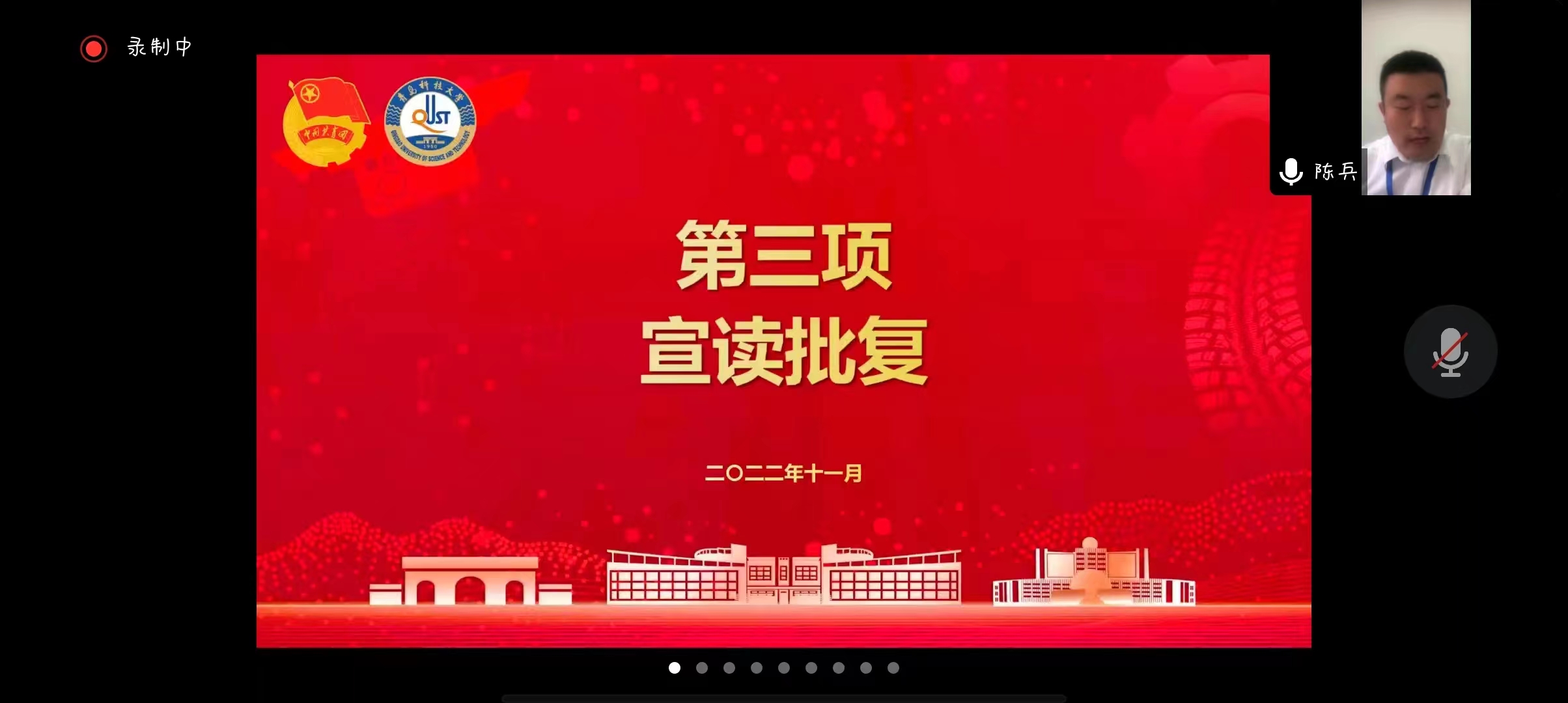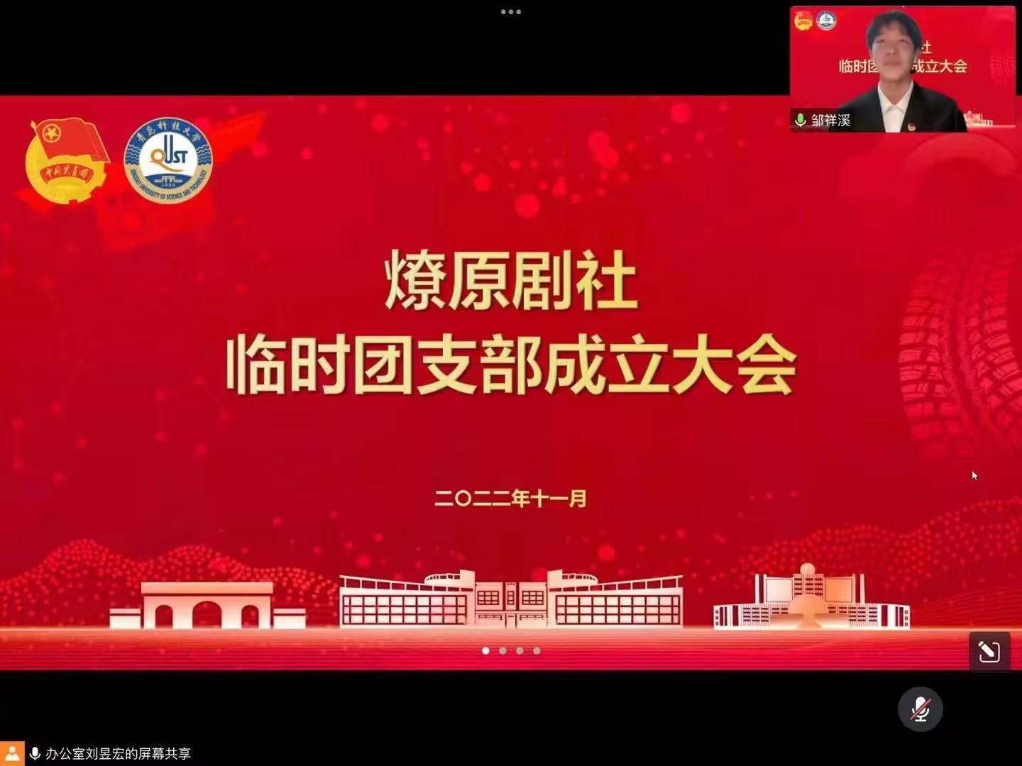 陈兵宣读了《关于同意成立学生社团临时团支部的批复》,他表示各学生社团应当以此次临时团支部成立为契机,坚定理想信念,凝聚青春力量,发挥好团支部的基层堡垒作用。当前全校上下正处在同心战疫的关键时刻,学生社团临时团支部更应主动担当,冲在一线,举办高品位、有特色、正能量的学生社团活动,为抗击疫情贡献社团力量。
