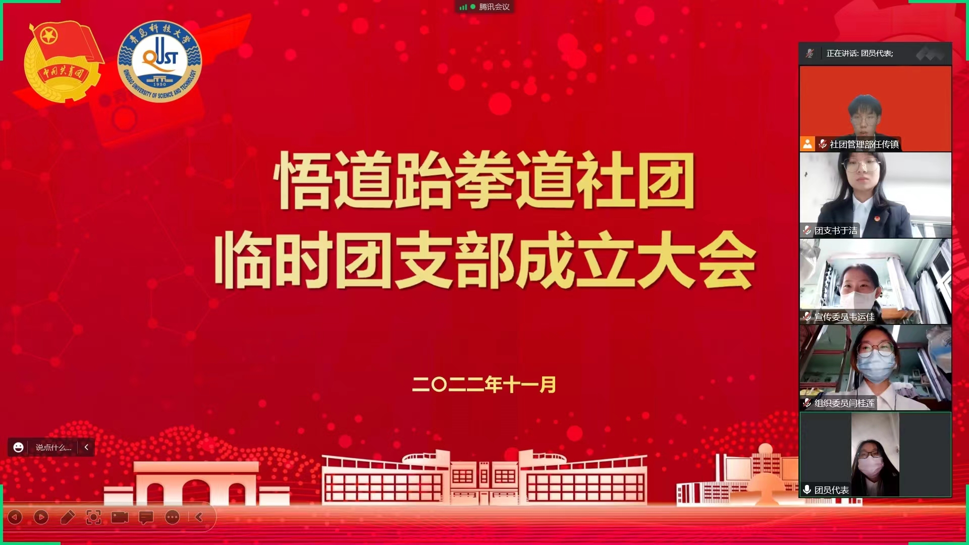 各学生社团临时团支部筹委会进行筹备情况报告,各学生社团团支部书记表态发言,一致表示要发挥好团员青年先锋作用,明确自身社团定位,牢记青春使命担当,当好学校校园文化发展的排头兵,以临时团支部为桥梁引领社团成员立志做有理想、敢担当、能吃苦、肯奋斗的新时代好青年。