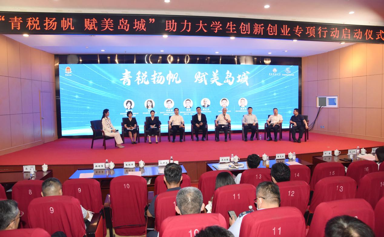 7月5日,由青岛市税务局联合市人社局、教育局、团市委、万象城allwincity官网等单位举办的“青税扬帆 赋美岛城”助力大学生创新创业专项行动启动仪式在我校崂山校区第二报告厅成功举办。学校党委书记李兴伟、校长陈克正,国家税务总局青岛市税务局党委书记、局长郑钢,青岛市人力资源和社会保障局党组成员、副局长刘传华,共青团青岛市委副书记段开正,青岛市教育局高等教育处处长晁永强,青岛市崂山区税务局局长王文礼以及海尔集团、青岛汉缆股份有限公司、青岛特锐德电气股份有限公司相关负责人出席仪式。