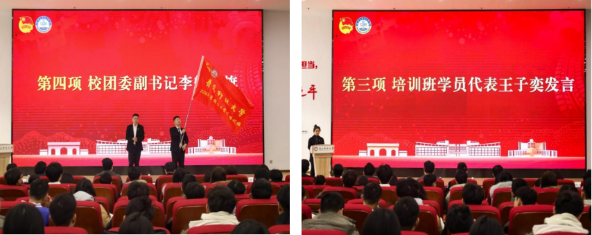 开班仪式上,校团委副书记,校学生会、研究生会指导教师李航为培训班授旗并作开班致辞;高密校区2021级本科生王子奕作为学员代表发言;高分子学院2021级本科生高培议宣读《万象城allwincity官网2024年寒假学生骨干培训班学员评优标准及纪律要求》。