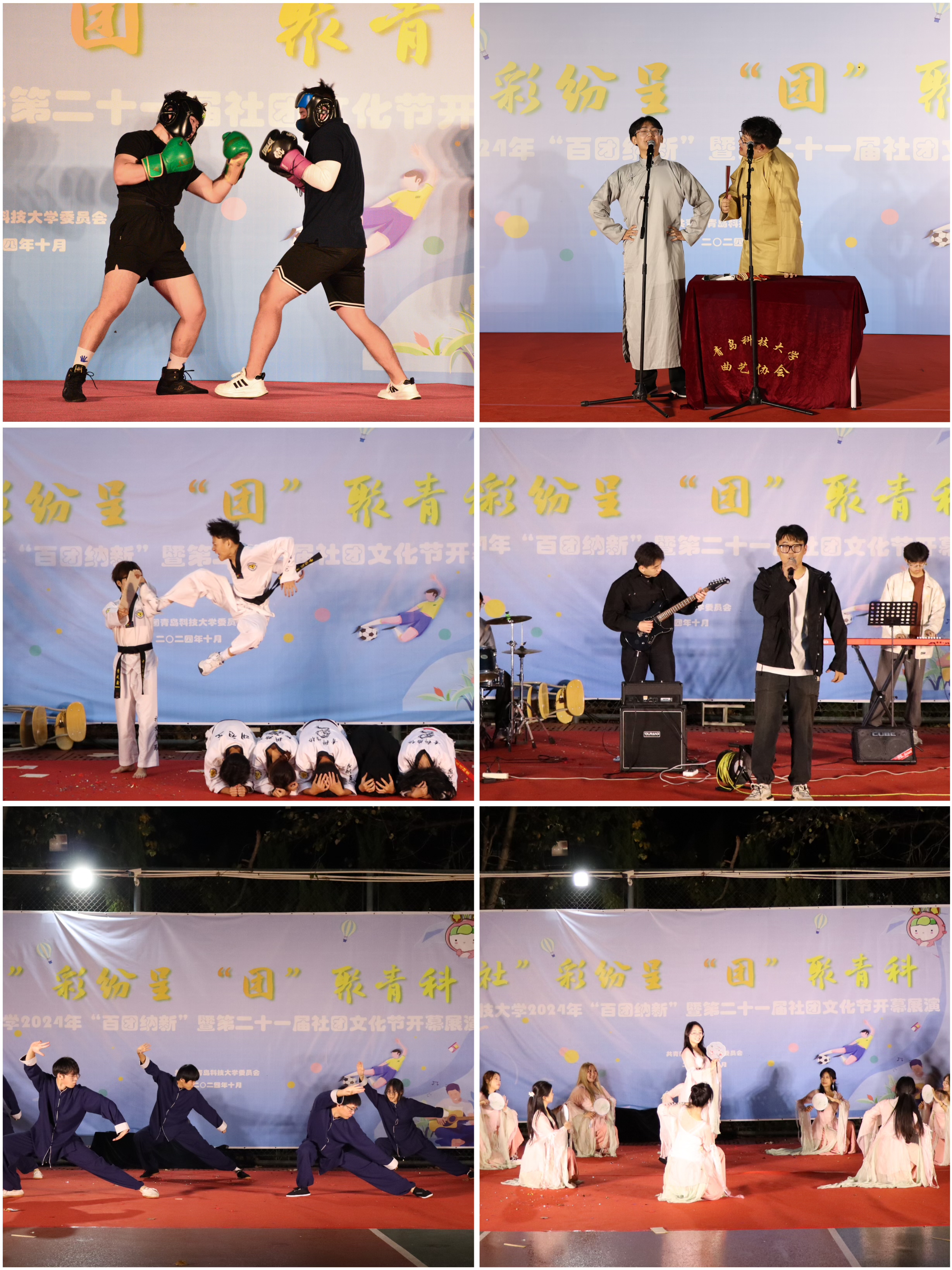 社团文化节开幕展演中,武术社带来的《太极十八式》《剑心武韵》、跆拳道社带来的《跆风破云》、散打社带来的《龙争虎斗》充分展示了学校体育综合育人成果;大学生艺术团声歌团、舞蹈团、器乐团等演绎的《入画江南》《民族串烧》等传统文化节目展示,让中华优秀传统文化深入人心;轮滑社、动漫社、红十字学生分会等学生社团带来形式多样的演出节目,涵盖德、智、体、美、劳5个领域,让科大校园充满青春活力,受到了学生们的热烈欢迎和充分认可。