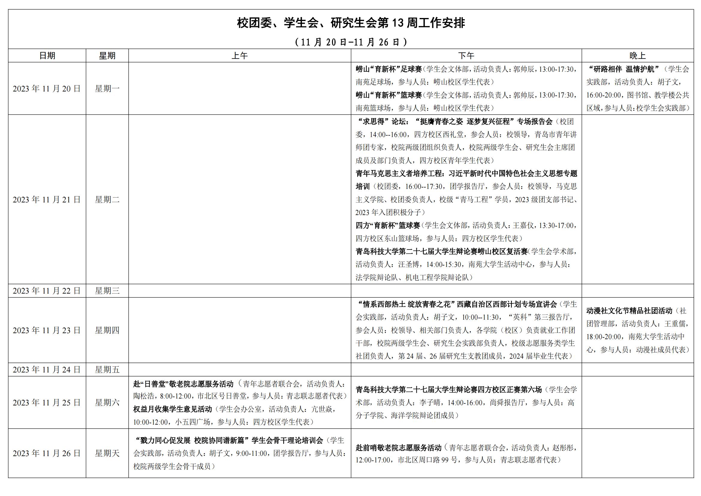 校团委、学生会、研究生会第13周工作安排