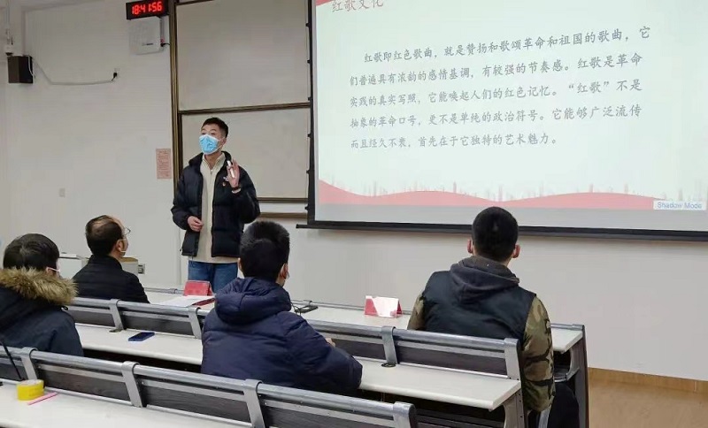 李林老师利用音乐党史课的形式带领校区青马工程学员进行党史学习,同学们从经典红歌中了解党的历史,感受党的光辉,学习党的精神。学习过程中,李林老师通过对歌曲《南湖的船,党的摇篮》的示范演唱、词曲分析,生动形象的深入剖析歌曲背后所反映的时代背景和红色记忆,号召同学们牢记来时路,走好新征程,让青春在全面建设社会主义现代化国家的火热实践中绽放绚丽之花!