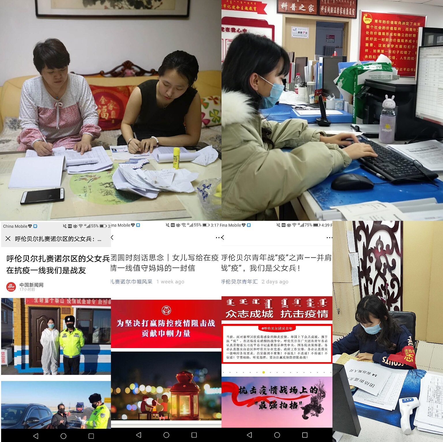 自疫情发生以来,城管161班预备党员李婉玥和ACCA191班的刘可心分别在呼伦贝尔市扎赉诺尔区政府团委、通辽市科尔沁区担任外宣志愿者,李婉玥负责线上抗疫楷模报道和信息采编工作,刘可心为社区公众号撰写防疫宣传文章、制作宣传单页,并且在社区定点定时分发。同为经管人,同为自己的家乡内蒙古自治区做出贡献。截至目前,李婉玥向扎赉诺尔区团委供稿多篇,其中《与您并肩 我自心安》、《301国道上的“暖心大白”》等四篇文章在扎赉诺尔区团委公众号上进行发表,且得到中国新闻网、呼伦贝尔团委、呼伦贝尔新闻等各大媒体平台的广泛转载。