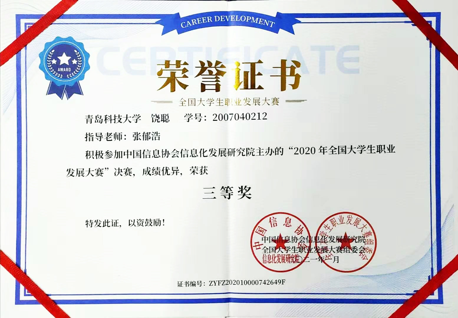 近日,2020年全国大学生职业发展大赛落下帷幕,自动化学院学子饶聪在决赛中荣获全国三等奖。