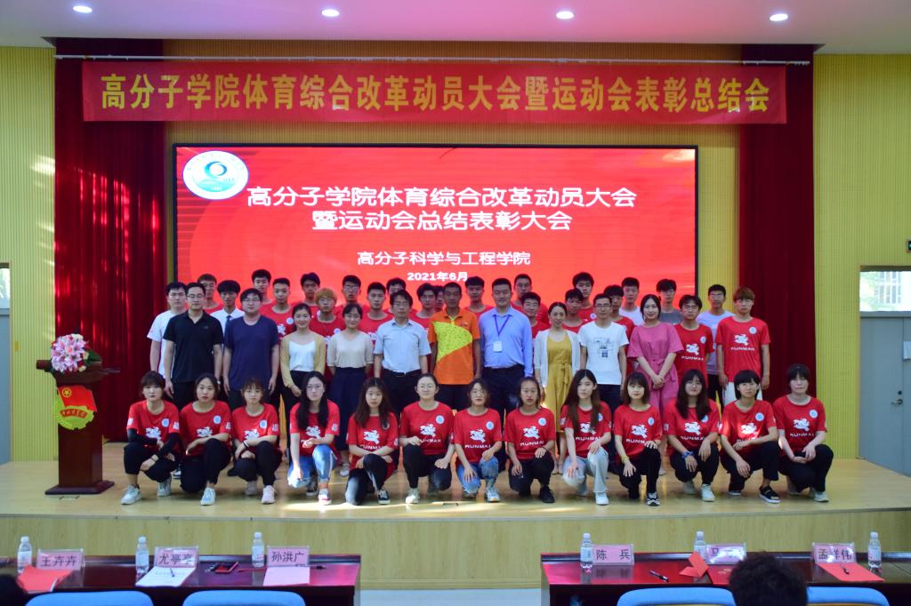为进一步促进体育与思政教育、学风建设融合共生,引导学生不断提升身体素质,助力学生全面发展,6月8日下午,高分子学院体育综合改革动员暨运动会总结表彰大会在四方校区尚舜报告厅举办。高分子学院党委书记孙洪广、校团委副书记陈兵、学院党委副书记尤亭亭,体育学院教师马力、高分子学院团委全体专兼职辅导员以及高院田径队全体运动员参加了此次大会。