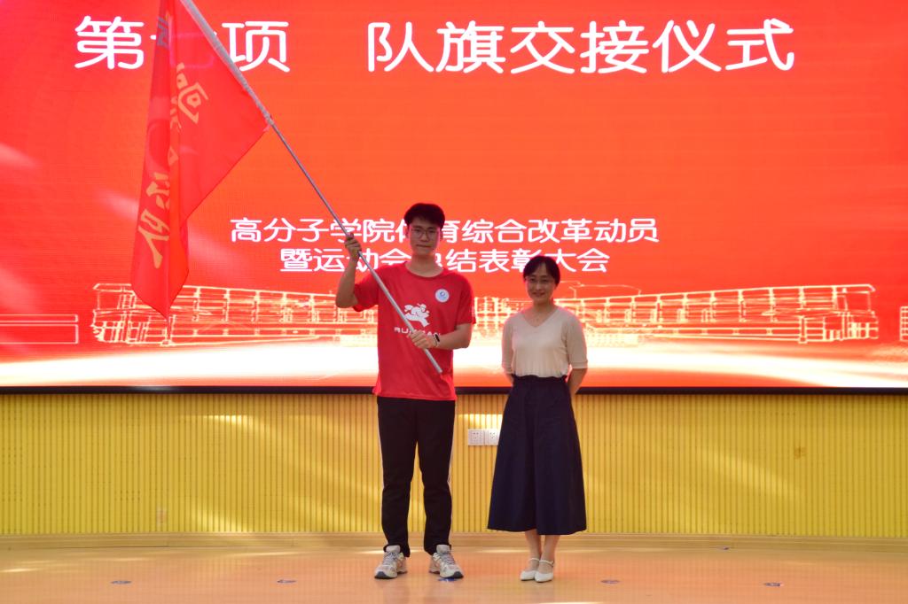 会上还播放了震撼人心的运动会展示视频,高分子学院田径队队长、运动员代表等分别结合自身感受作运动会总结发言。大会对高分子学院体育改革先锋、优秀运动员、优秀后勤队员颁发了刻有田径队标志的队戒;党委副书记尤亭亭为新一任田径队队长颁发聘书并授旗。会上,同时聘任体育学院马力老师为田径队指导老师。