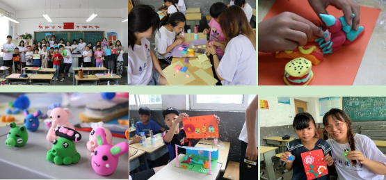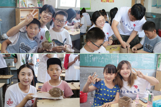 下午,志愿者们带领孩子们开展了“体味陶艺魅力,手创陶艺作品”陶艺制作与欣赏创意手工课堂。志愿者向孩子们介绍了陶瓷艺术的发展历程,欣赏了一些著名的陶艺作品。随后,志愿者与小朋友一一配对,制作了许多精致可爱的陶艺作品。