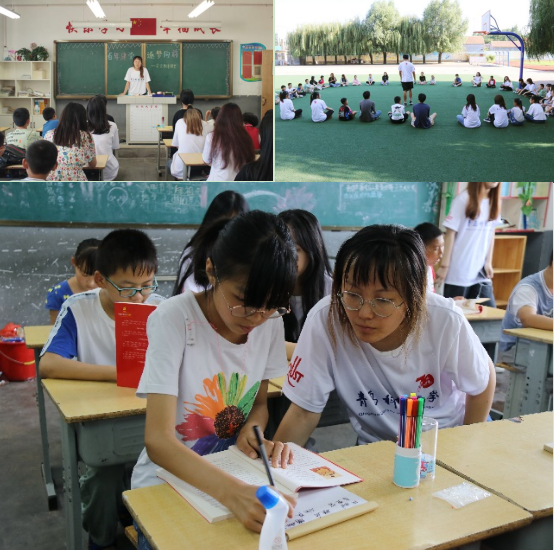 7月19日上午,志愿者们带领孩子们开展了书香校园晨读活动,孩子们在志愿者的陪伴下认真阅读有趣的党史小故事。随后,志愿者们组织了“夜空中最亮的星”漂流瓶活动。孩子们在信纸上写下了“给十年后的自己的一封信”,一笔一画、一字一句,认真的笔触中都饱含对未来的期许和展望。漂流瓶活动结束后,紧接着展开的是“音动你心”唱歌教学,志愿者们特意选取了《夜空中最亮的星》这一首歌,希望向孩子们传递出那些对于梦想的不懈与坚持。