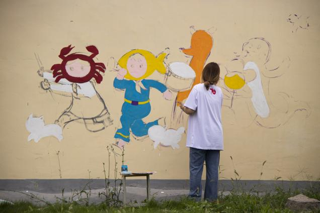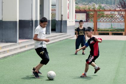 下午志愿者们兵分两路,一队带领孩子们开展趣味运动会,另一队进行墙绘。志愿者与孩子们一起玩“贴膏药”游戏。游戏结束后,孩子们在志愿者的带领下进行踢足球前的热身运动,以防孩子们在运动中受伤。通过这次的运动会,孩子们增进了与志愿者之间的友谊,丰富了课余生活,充分展现了小朋友的青春活力。另一边马继鑫老师带领志愿者们在操场东墙进行“百年建党,逐梦向前”墙绘活动的起草工程,将建党100周年标志、党徽、天安门等红色元素融入墙绘中,弘扬党的思想,传承红色基因,让红色精神影响到每一个人。伴随着晚霞的到来,第一天的正式支教活动也逐渐落下帷幕。