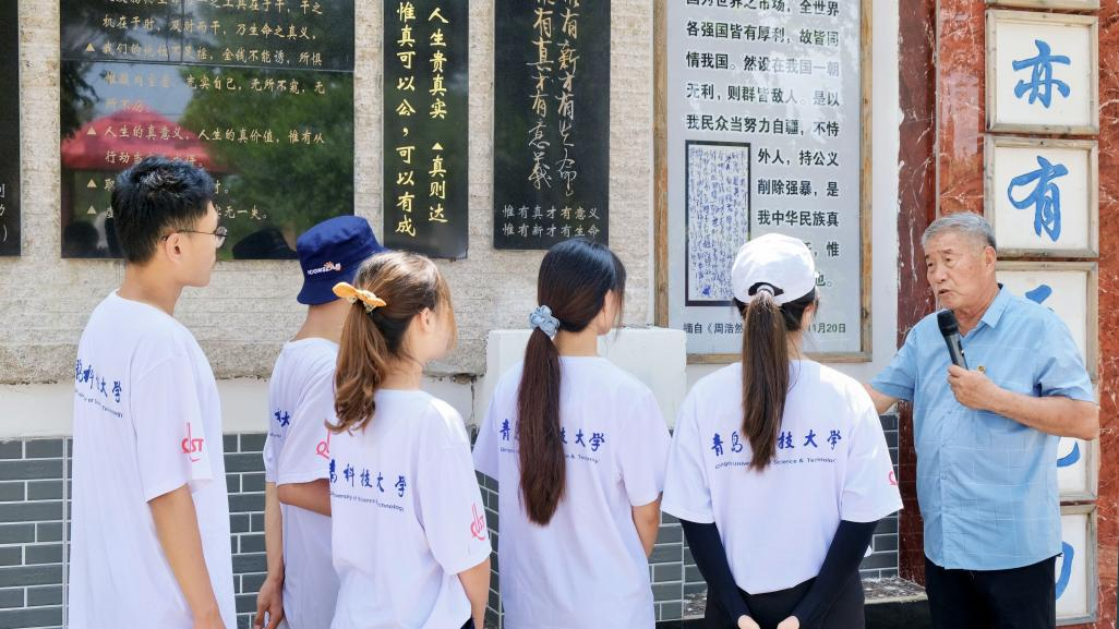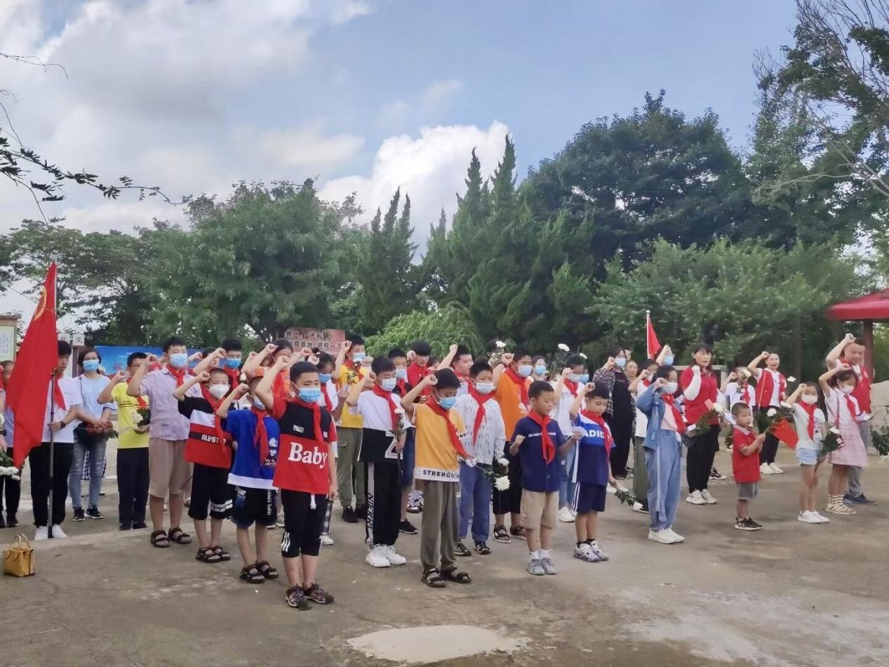 2021年7月21日上午,万象城allwincity官网赴即墨“百年征程,我心向党”党史学习实践服务团来到青岛市即墨区周浩然文化园。与此同时,即墨区曙光公益志愿者协会组织学生、家长近百人到周浩然文化园举行缅怀革命英烈周浩然烈士、学习先烈事迹,宣誓,敬献鲜花等活动,实践团与曙光公益联动,一同缅怀周浩然先烈的丰功伟绩,学习“浩然精神”。文化园里,紫藤架下,文化园园长周法廉老先生,也就是周浩然的六弟,为我们讲述了关于周浩然不为人知的感人事迹以及“浩然精神”的丰富内涵。