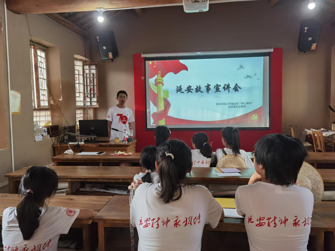 7月27日下午,为全方面的了解延安精神,倾听青少年们印象中的延安故事,实践团举办了延安故事宣讲会,邀请了10位当地的小学生参加。在实践团成员的引导下,小朋友们分别讲述了自己了解的革命英雄的事迹,并进行了剪纸作画的活动,用艺术的形式表达他们心中的延安。在此过程中,孩子们发挥丰富的想象力,自主设计,精心制作他们的作品。薄薄一张纸,轻轻一支笔,小小一把刀,他们用画笔和剪刀作画,表达了他们对延安、对党和国家的祝福,表达的是学生们对学习与生活的热爱。