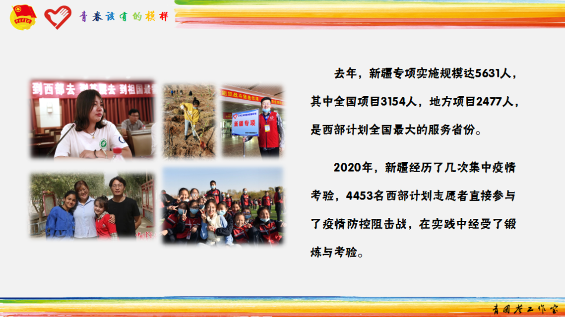 近年来,在“三全育人”综合改革的大背景下,学校共青团进一步加强引导、鼓励大学生“到西部去,到基层去,到祖国最需要的地方去”,激励广大青年把个人理想追求融入党和国家事业之中,勇担使命,不负韶华,为国家建设贡献工程大青年的磅礴力量。越来越多的青年学生响应号召,选择参加西部计划,在投身西部基层建设中开启人生新的征程,以实实在在志愿服务行动为西部地区发展建设和母校教育事业增光添彩。