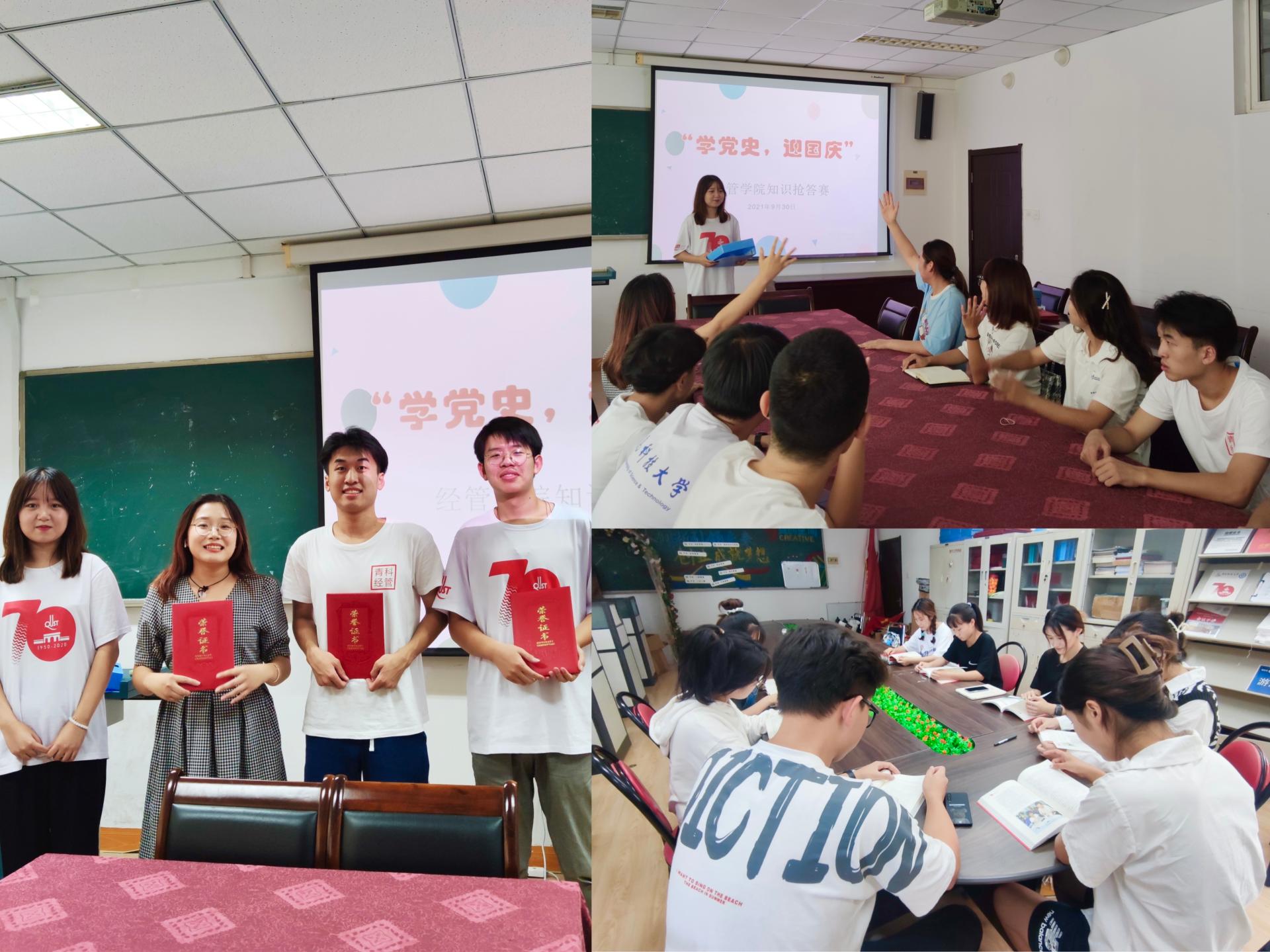 忆往昔峥嵘岁月,看今朝盛世华章。经管学院组织开展“学国史,迎国庆“国史知识竞赛活动,以国家发展重大历史事件及关键时间节点为基础,以考察的方式引导学生回顾国家发展历程,坚定为中华民族伟大复兴中国梦的实现添砖加瓦的坚定信念。此外,经管学院组织“庆祖国华诞,展经管风采”党史学习教育及“颂歌献祖国、礼赞新时代”红色经典诵读,分别从《党章中的党史》《颂党史、悟初心》《百年党史的伟大精神》《贯彻学习2021年习近平总书记在清华大学考察时讲话精神》四个专题纵深学习,对党史做到了“宣”与“讲”的联动,“理论”与“实践”的结合,进一步推进党史学习教育走深走实。