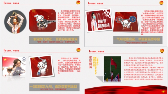 学习奥运榜样,贡献青春力量。团支部中党员代表带领大家回顾中国健儿的辉煌,选取了杨倩、侯志慧、孙一文等青年奥运冠军,“一发破的飞弹出,百步穿杨射金来”, 00后小将杨倩的奥运首金带给国家的不仅是士气上的激励更是实力上的肯定;“一气呵成拔山起,举重若轻勇夺金”,侯志慧举起的不仅是突破自我的杠铃,更是青年的力量、国家的力量;“一气呵成拔山起,举重若轻勇夺金”,孙一文用果敢、用敏锐、用实力向世界宣告中国在各方面都迸发着不可估量的潜力。学习奥运健儿的精神就是要学习他们“初生牛犊不怕虎”的敢作敢为、学习他们“咬定青山不放松”的坚忍不拔、学习他们“国旗的方向就是胜利的方向”的爱国情怀。团支部激励大家以奥运精神为指引,发现青年精神的闪光点,挖掘青年学生自有的优势,不断学习,努力实践,在自己的领域开拓属于自身的金牌奖章。