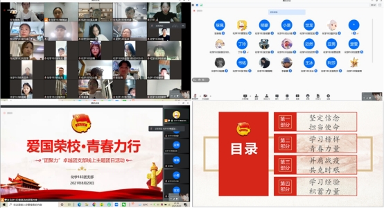 为响应“党旗所指就是团旗所向”的号召,充分展现团组织作为党的助手和后备军的担当,按照学校共青团“六个驱动”理念方法,进一步提升团的组织力、引领力、服务力和贡献度,夯实基层基础,增强基层团支部的组织活力,提升支部成员学习积极性和主动性,化学183团支部开展“爱国荣校•青春力行”主题团日活动。
