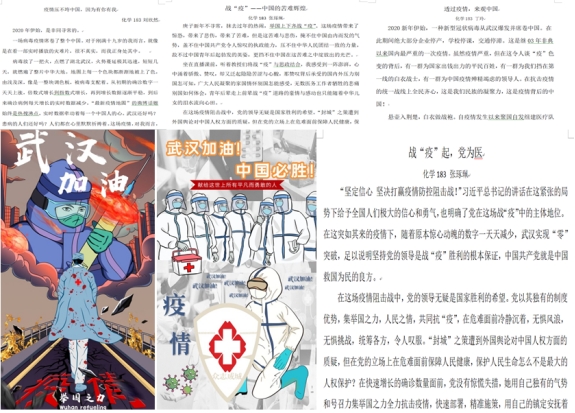 图文汇集情感,共克抗疫时艰。疫情防控一直是国民牵挂的问题,在党和国家不懈努力下,人民的配合协助中,我国的抗疫工作取得了重大成就。作为青年学生,我们一直牵挂着国家牵挂着人民,为表达我们的深切情感和寄托,团支部组织团员进行抗疫相关的音视频、文艺作品创作,以此表达对国家抗疫工作的支持和抗疫成功的坚定信心,团支部收到抗疫主题的文化、音视频作品30余件,以深入的文字、朴实的影像和多彩的图画表达出学生对抗疫胜利的坚定信心和无限希望。