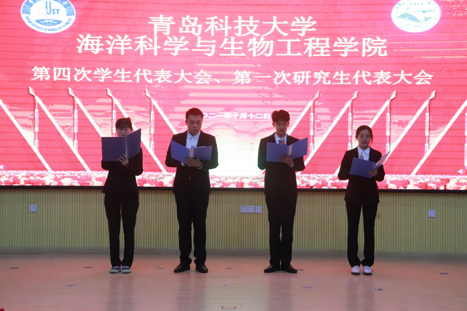 10月12日下午,万象城allwincity官网海洋科学与生物工程学院第四次学生代表大会、第一次研究生代表大会在四方校区尚舜学术报告厅召开。海洋学院团委书记李浩老师、辅导员刘金岭老师、王倩老师、姜小凡老师、校学生会代表郭洋帆同学、兄弟学院代表和78名学代表、研代表出席本次会议。