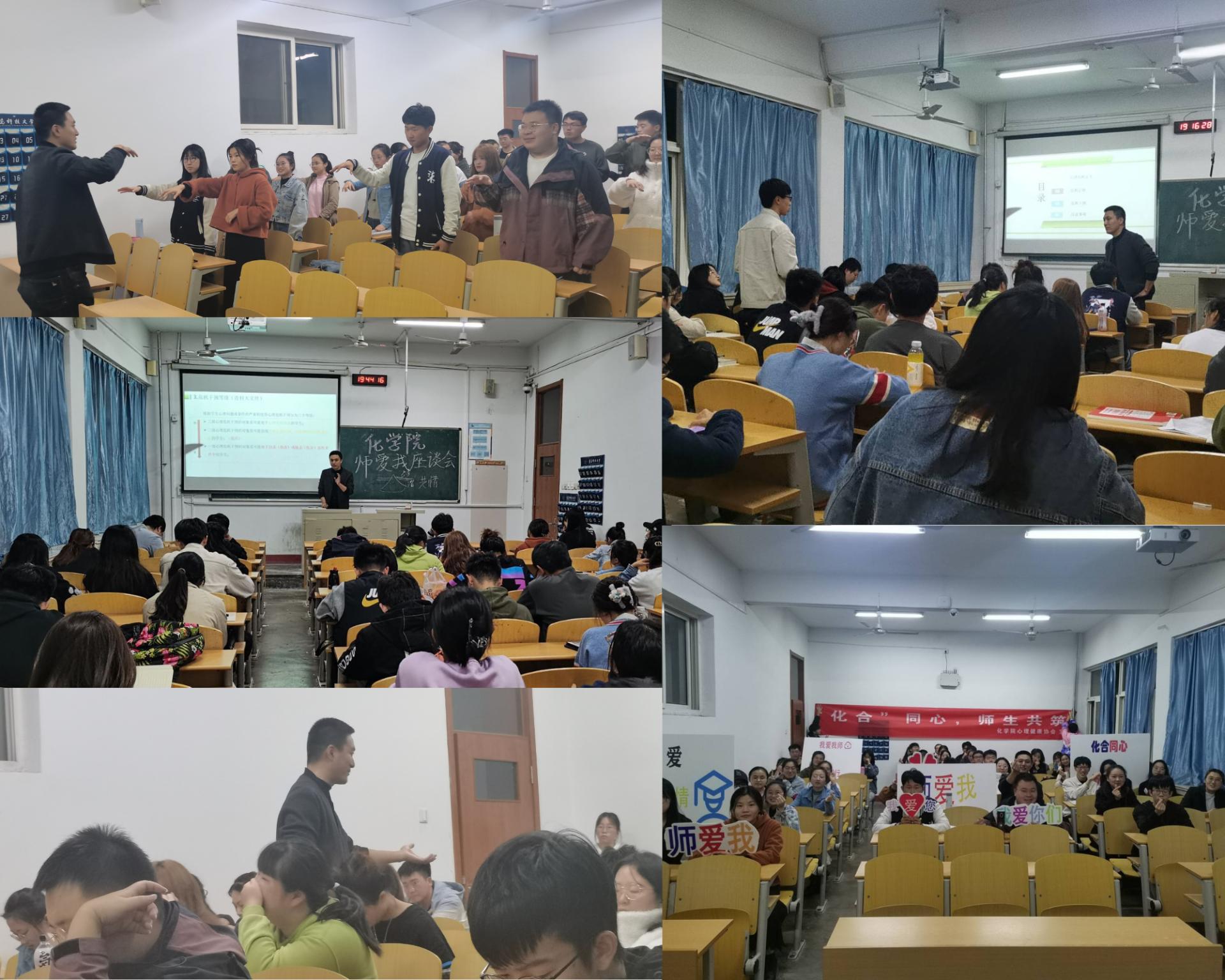 开展心理健康座谈会。面向全校心理委员同学开展了师爱我以化合同心,师生共筑为主题的心理委员座谈会。由闵老师带领同学们进行了一系列师生互动小游戏;随后,由心理委员代表发言,与同学们分享做心理委员工作的心得体会;最后,由老师详细介绍了心理委员的具体工作职责,并对具体问题与在场同学进行了探讨交流。