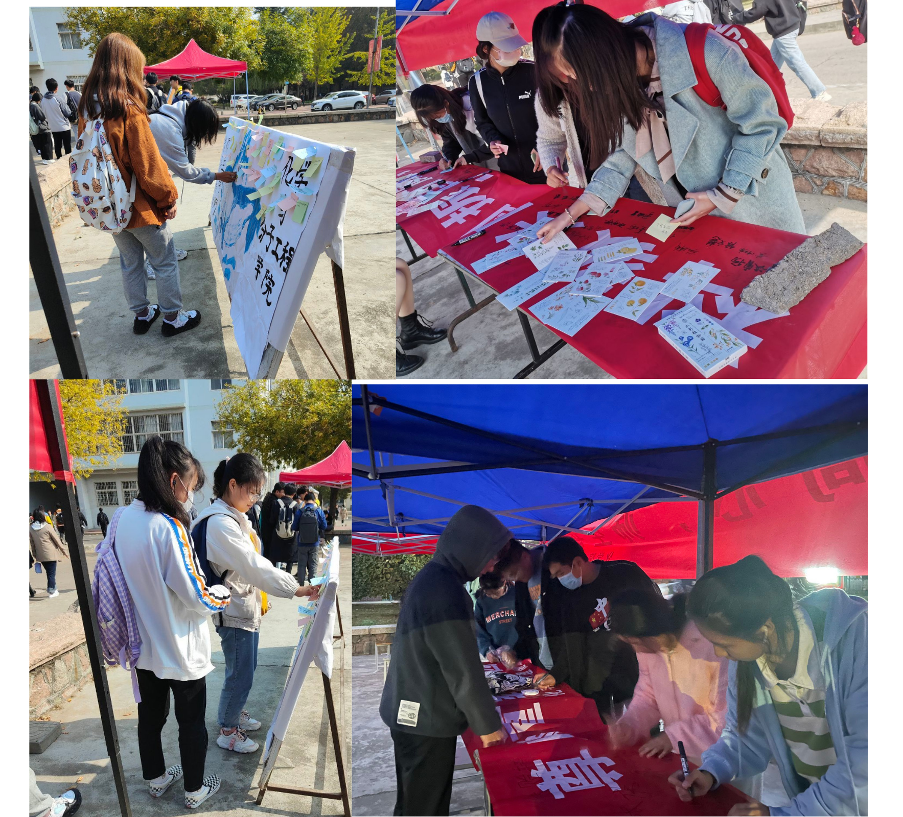 开展线下署名留言活动。化学院525心理健康协会在小五四面向全体师生开展了横幅署名和便签留言活动,同学们通过便签留言的形式,写下对老师的祝福与感谢,分享师生之间的感人瞬间,许下自己对未来大学生活的期许。