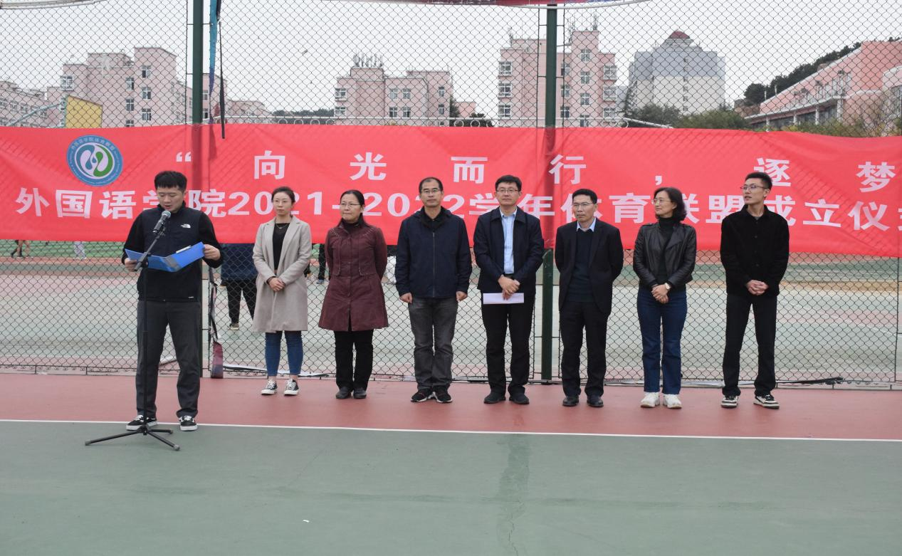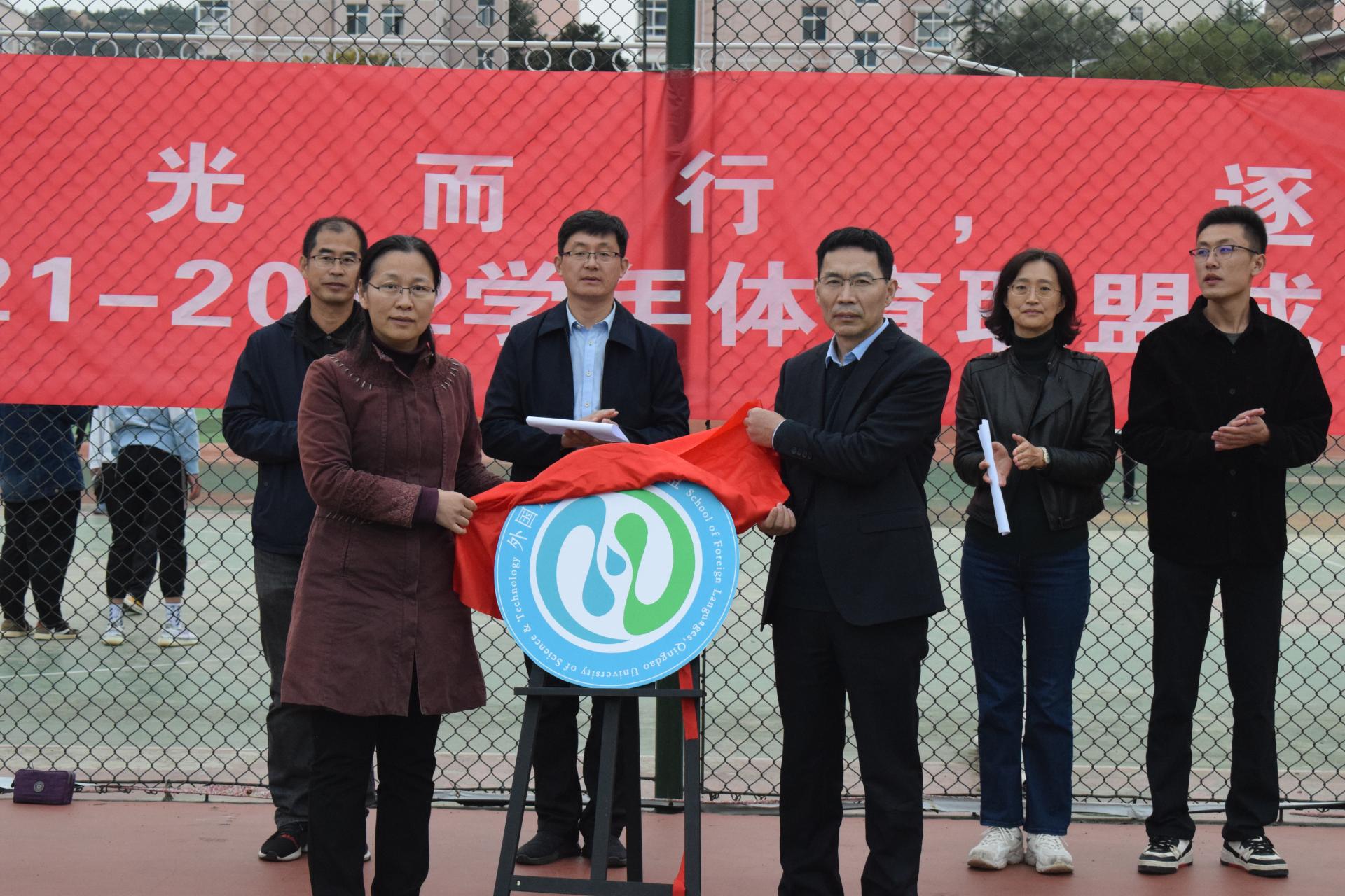 毛常明代表校团委宣读了《关于外国语学院成立体育联盟的批复》。尹洪山和曲斌艳共同为体育联盟揭牌。