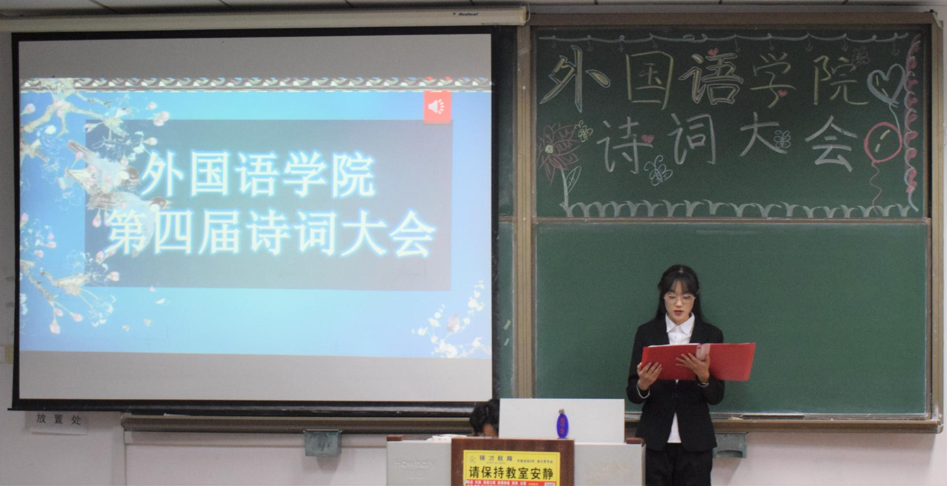 为带领学生走进古典诗词的瑰丽世界,领略中华传统文化之美,共同感受诗词的独特魅力,2021年11月5日下午,外国语学院在明德楼228教室举行第四届诗词大会。