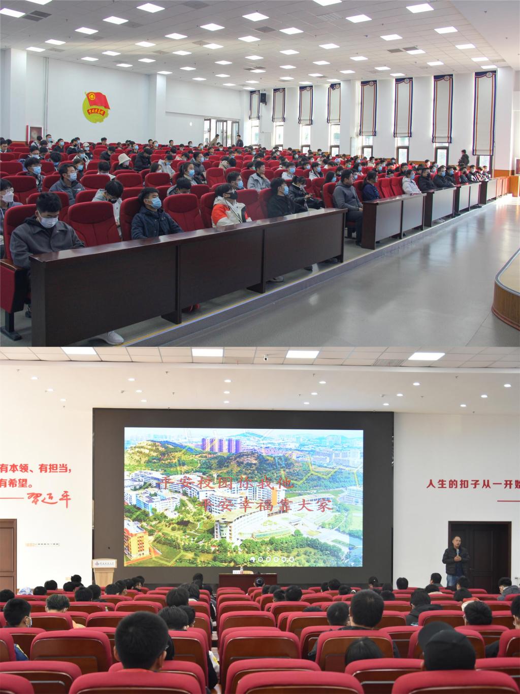 随后,大学生安全知识讲座在北区团学报告厅正式开讲。赵淑东老师从六个方面入手,以国内高校典型火灾事故案例作为警示,强调学校主要场所火灾的严重危害性,引导同学们做到四懂四会,掌握四个能力,肩负防火安全责任,筑牢消防安全意识。