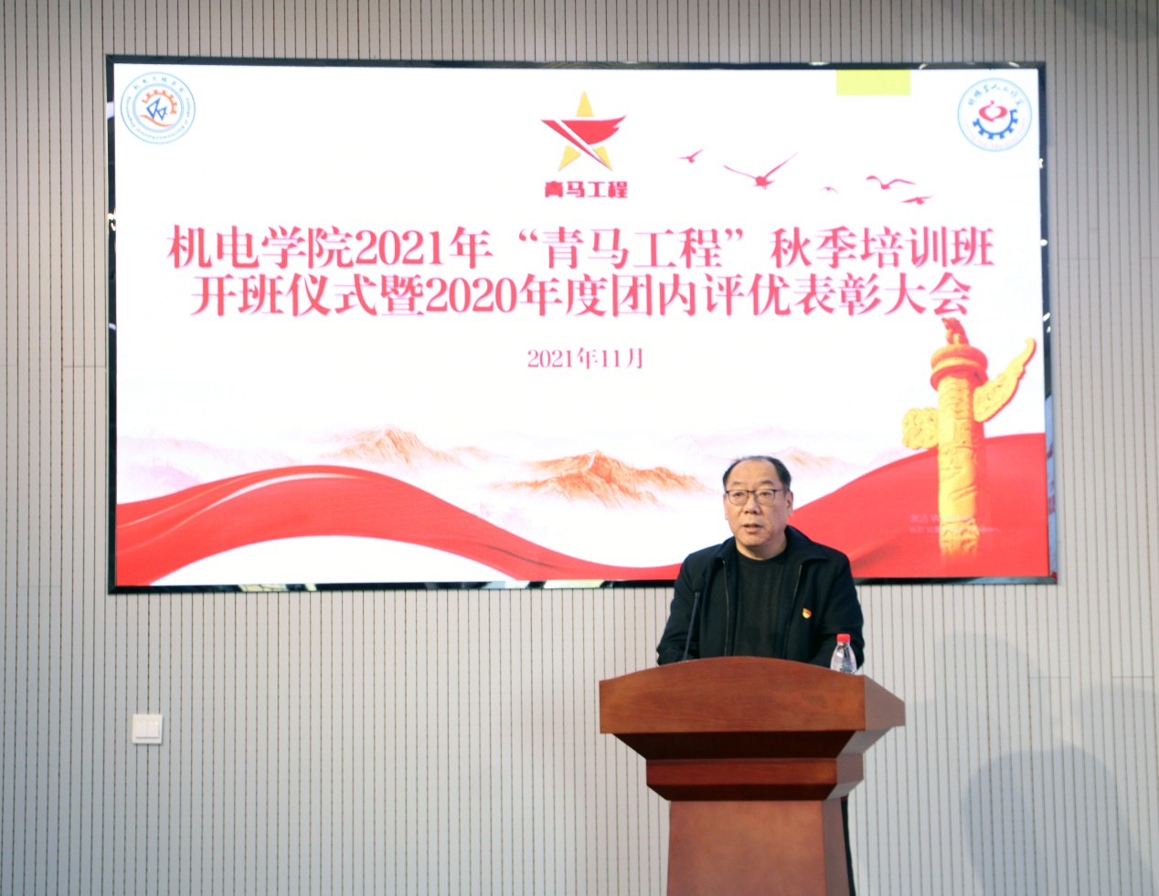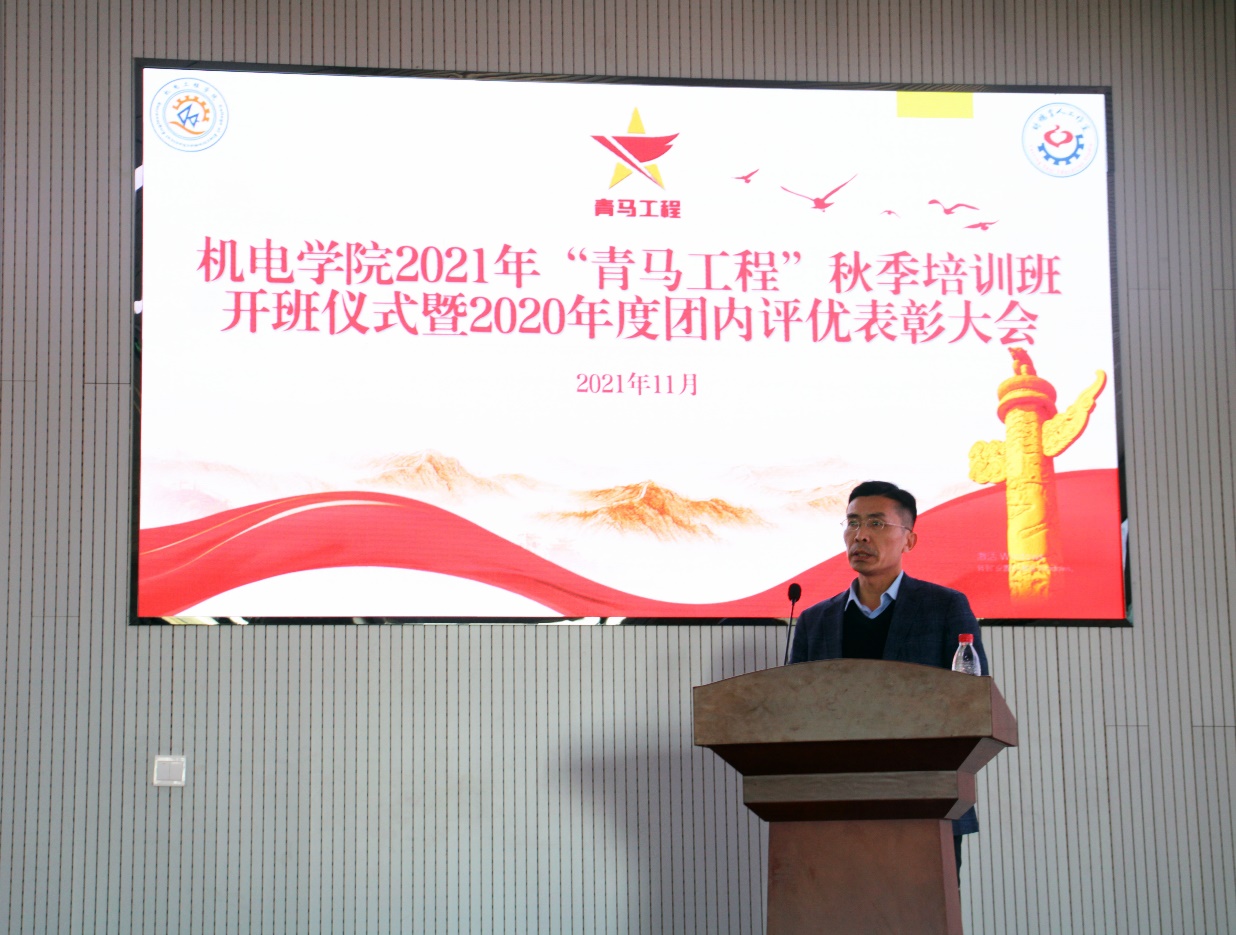 为贯彻落实团中央联合教育部、民政部、农业农村部、国务院国资委联合印发的《关于深入实施青年马克思主义者培养工程的意见》要求,11月9日15时,机电学院于D3楼530会议室开展2021年“青马工程”秋季培训班开班仪式暨2020年度团内表彰大会。机电学院团委书记兼学工办主任王作辉主持会议。