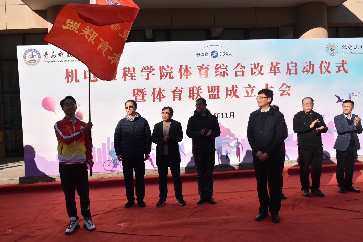 为积极响应学校体育综合改革,助力学院体育工作高质量发展。11月9日下午,机电工程学院体育联盟综合改革启动仪式暨体育联盟成立大会举行在机电大楼前举行。学校团委书记毛常明,学院党委书记孙立军,机电学院院长何燕,学院党委副书记兼副院长肖强,副院长张卫锋、李剑光以及学院团委全体专职兼职辅导员以及学生代表参加本次活动。