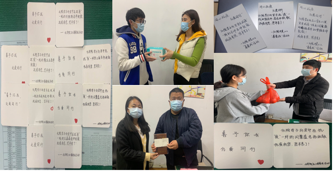 学院团委老师为3月25日前后过生日的同学送去生日祝福,让同学们感受到疫情时期来自学校和老师的温暖与关怀。同时学生们也为学院封校期间校内值班老师送去心意卡和小礼物,对疫情封校期间各位驻守教师的的辛苦付出和尽职坚守表示感谢,善予你我,化爱同行。