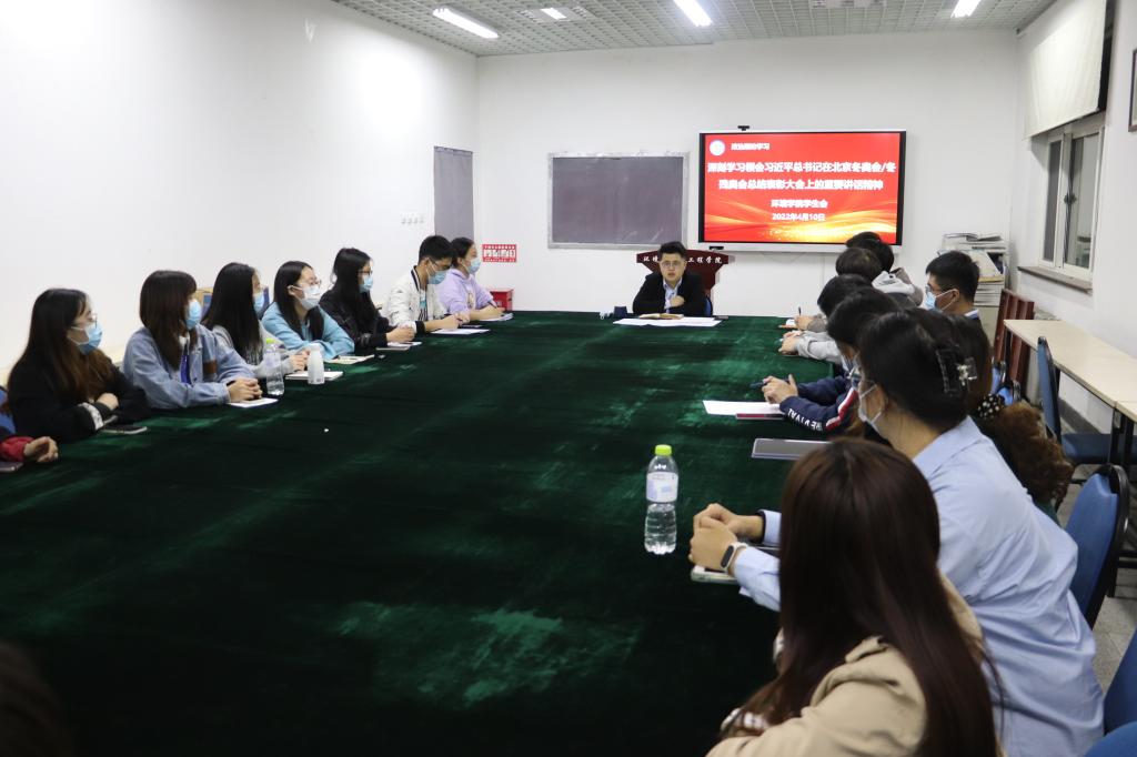 近日,北京冬奥会、冬残奥会总结表彰大会在人民大会堂隆重举行,习近平总书记出席大会并发表重要讲话。4月10日,学工办主任兼团委书记钟硕带领环境学院学生组织主要学生干部集体观看了大会视频,学习习近平总书记重要讲话精神,钟老师强调,学生会干部要深刻认识到习近平总书记寄予青年学生的厚望,汲取北京冬奥精神中的奋进力量,提高自身的思想觉悟和认识,学在前头,走在前头,大力弘扬并践行冬奥精神。