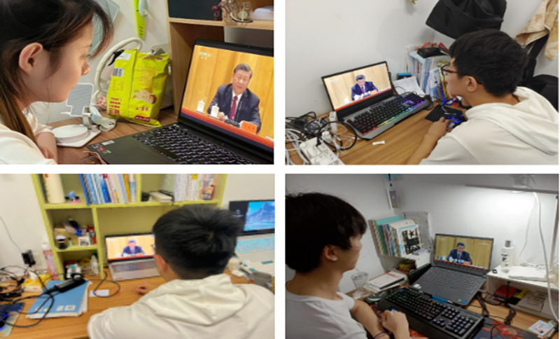 中德校区学生会组织各部观看大会直播,学习重要讲话精神并结合学校“爱体育、兴科大”的精神理念记录学习感悟。