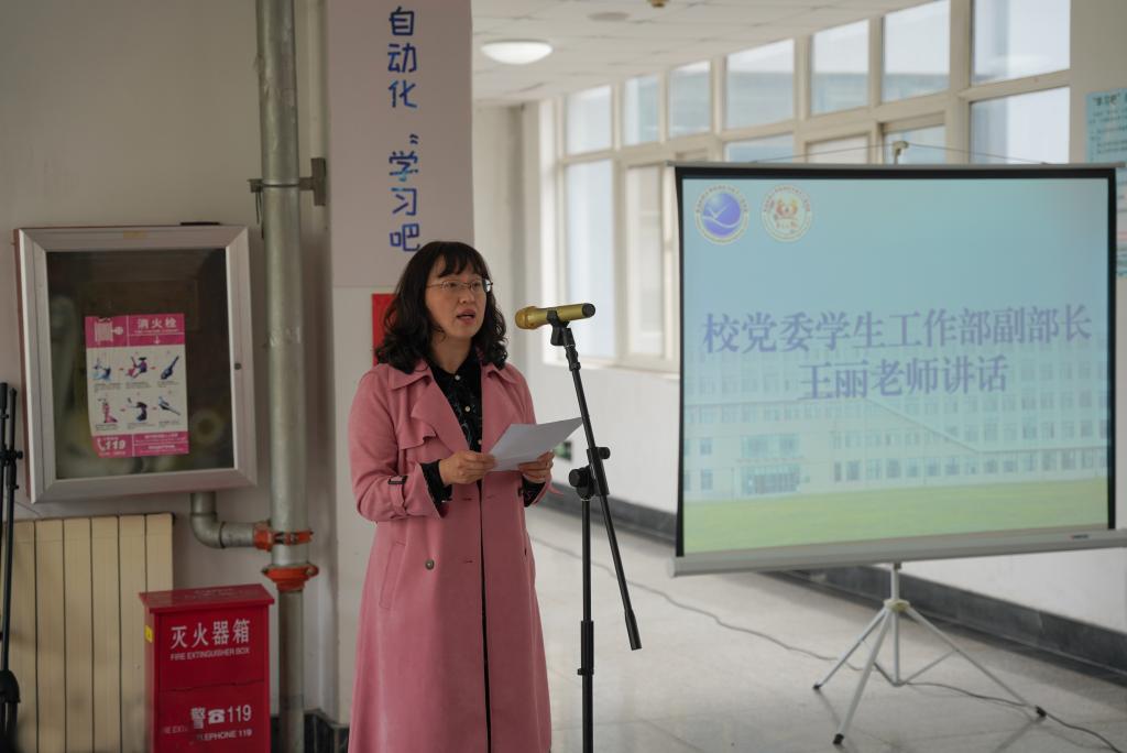 仪式上,学校党委学生工作部副部长王丽讲话。她提出,劳动精神是社会不断追求的崇高精神内涵,志愿服务是社会文明进步的重要标志,也是广大青年学子奉献爱心、参与劳动的重要渠道。星火义工队作为学院开展劳动教育的生动实践,致力于倡环保、助残障、校内义工服务三类志愿活动,以实际行动为保护环境、关爱自闭症儿童、敬老爱老、学校防疫工作等献力,展现了中国青年的责任与担当,赓续传承“科大家风”。以此次建立实践基地为契机,望今后更多学生能够加入志愿者集体,弘扬劳动精神,丰富志愿服务内涵和外延,努力成长为德智体美劳全面发展的社会主义建设者和接班人。