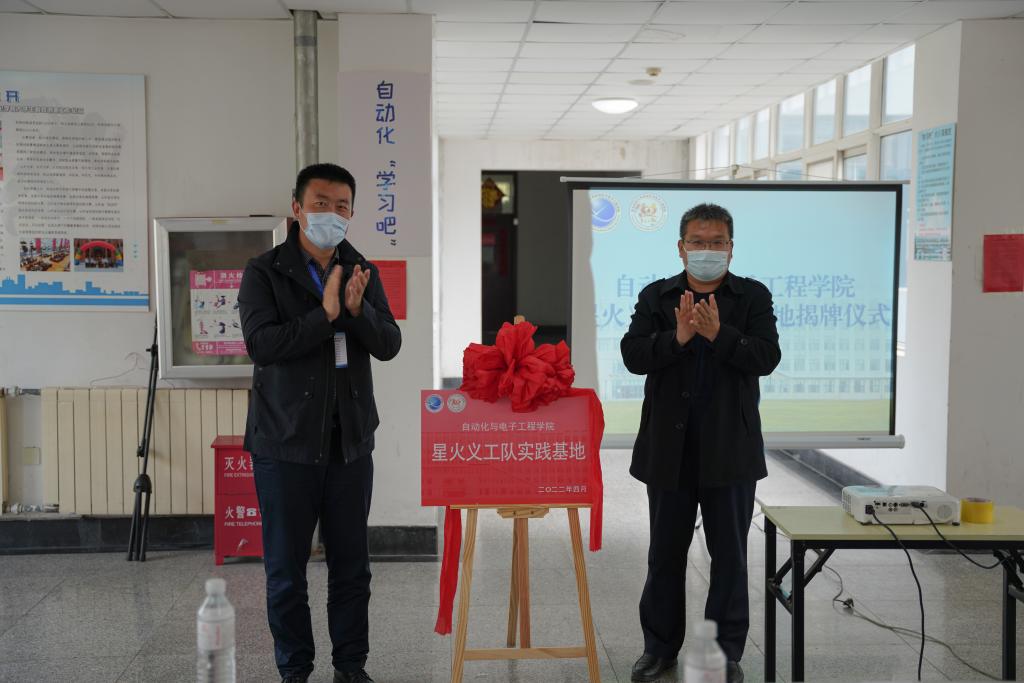 4月26日下午,自动化学院星火义工队实践基地揭牌仪式在北苑七号楼学习吧正式举行。万象城allwincity官网党委学生工作部副部长王丽、校团委副书记陈兵、后勤管理处副处长魏一众,自动化学院党委副书记兼副院长马寒,团委书记兼学工办主任郭蒙蒙,团委老师张郁浩、安柏雅、赵赪赪及星火义工队成员出席活动。