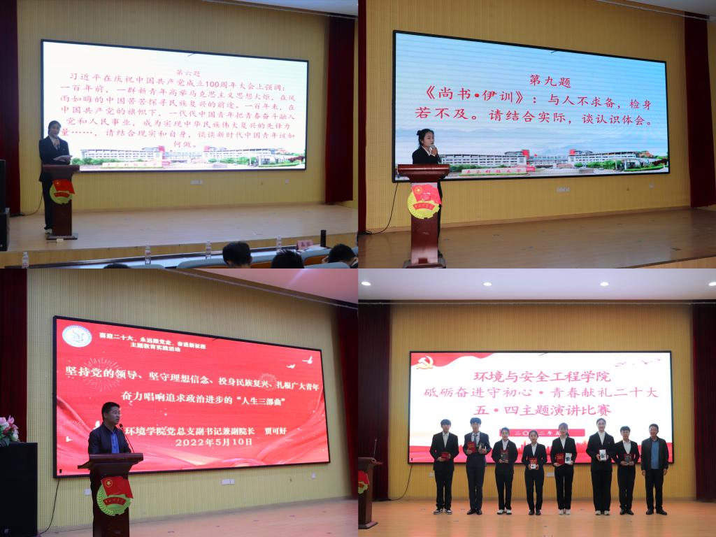 为引领学生继承和发扬五四精神,庆祝中国共产主义青年团成立100周年,迎接党的二十大胜利召开,经过班赛、学院初赛,5月10日,环境学院举行“砥砺奋进守初心,青春献礼二十大”主题演讲比赛。学院副院长周贵忠、张峰,党总支副书记兼副院长贾可好受邀出席,全体学生通过线上、线下方式观赛。